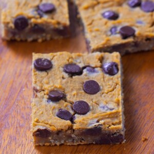 Soft, gooey chocolate chip pumpkin blondies, to fuel your pumpkin obsession!