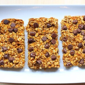 You can top the oatmeal bars with maple syrup, or chocolate chips, or coconut butter. Or you can just eat them plain.